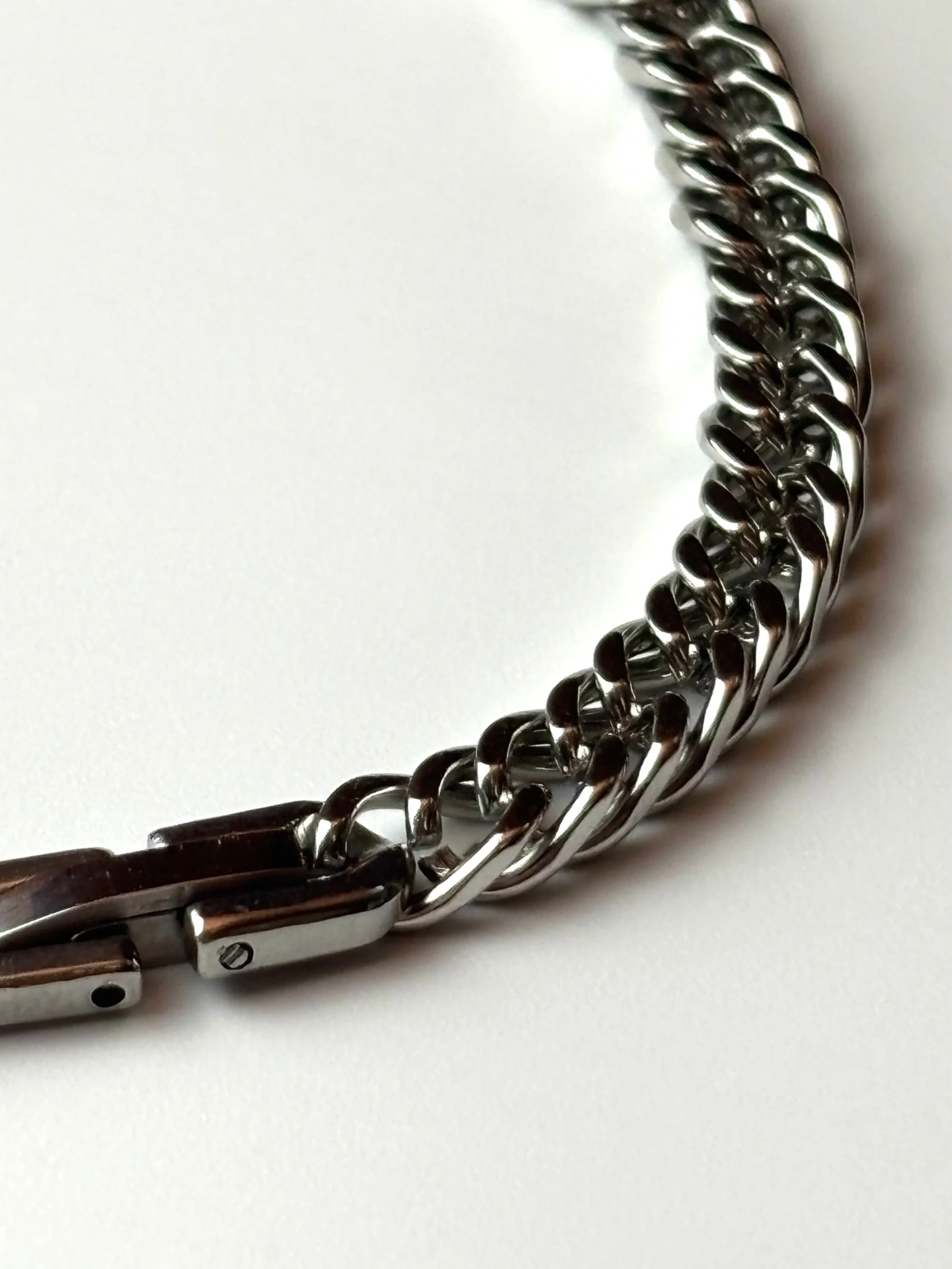 This silver-tone Cuban link bracelet features a precision-crafted, tight-knit chain design paired with a seamless fold-over clasp for a sleek finish.